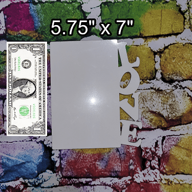 Photo Frames are made of MDF wood and are approximately 3/16" thick. Click on each photo to see their approximate size; dollar bill for size reference.